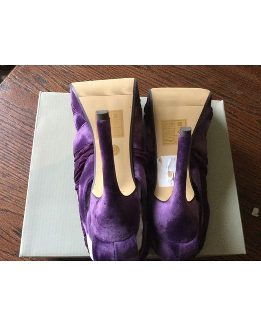 Grey Crushed Velvet Pom Tie Up Leg Block Heel Shoes UK 5
