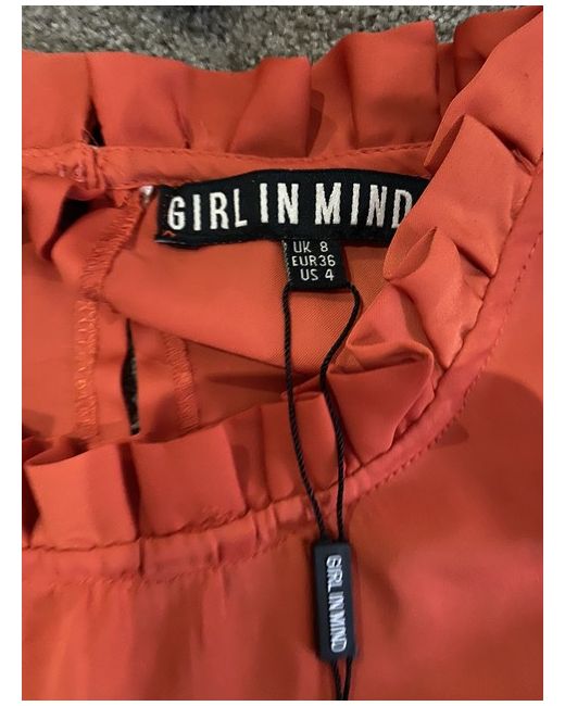 Blouse, size 8. Orange satin feel blouse with a few defects as shown in photo, may be washable