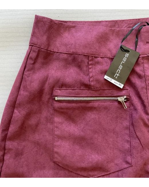 The label says 'button down suede'. it looks like suede but it is polyester. Skirt Details. Main Materials : 100% Polyester. Main colour : label call this 'berry'. Does the waist have a zip :No.
