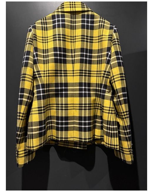 This is a "Bar" blazer jacket by Christian Dior, from the Fall/Winter 2022 collection. It has a peak lapel and a button-front closure. This jacket features a fitted waist and two front flap pockets. It has long sleeves with three buttons at each opening and it is short in length. This jacket is a French size 40 which is equivalent to a UK size 12 It is composed of yellow and black plaid wool tweed fabric and it is lined in black silk satin twill fabric. Exterior: Yellow and black plaid wool tweed fabric (100% wool) • Exterior Pockets: Two front flap pockets • Lining: Black silk satin twill fabric (100% silk ) Retail: £2,900