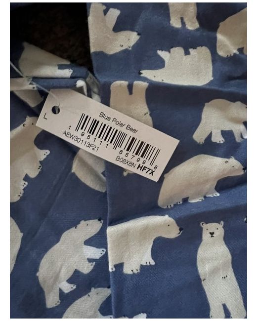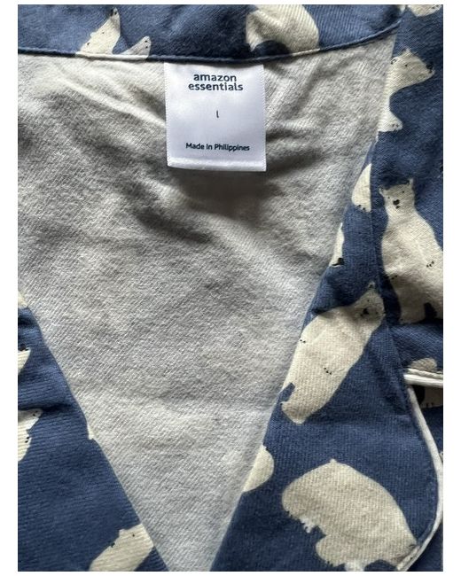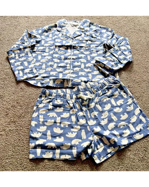 Midweight flannel set with long sleeve button up shirt and shorts. Blue with white polar bear design.