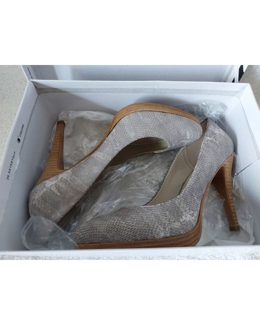 Grey leather high Heel Court Shoes 8W Condition New