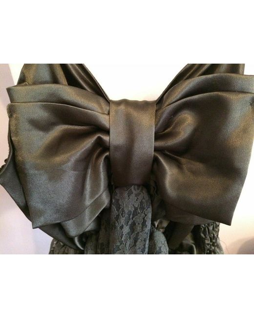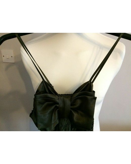 M Dark Patterned Bowed Strappy Evening Party Dress UK 8/10 da Women di colore Verde