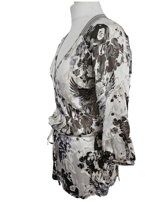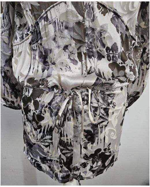 Long tunic top with drop waist tie detail. Centre back length approx 29.5". Burnt out floral pattern.