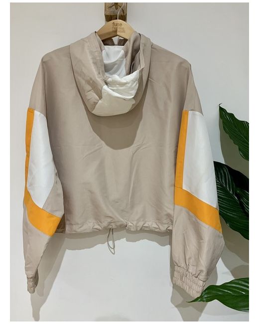 New Retro Soft Shell Half Zip Patch Pocket Cropped Hoodie L da Women di colore Beige