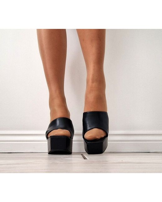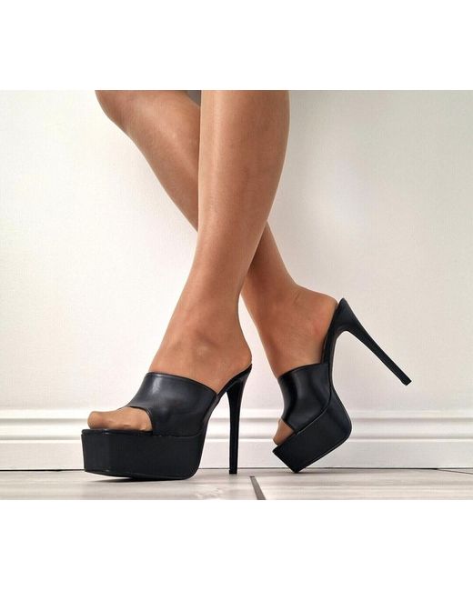 Ladies Statement Platform Very High Heel Mules Slip On Sandals Shoes 3-8 da Women di colore Nero