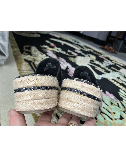 Made of high quality black leather with jute covered platform and embedded chain. Very comfortable shoes/sliders with the added benefit of an elastic leather covered vent to allow flexibility when walking, a sign of the high quality of these shoes.
