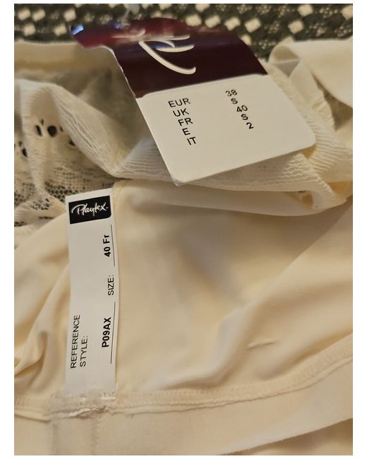 Indulge in comfort and style with this Playtex Cream Bra Set, perfect for any occasion. The set includes a beautifully crafted cream bra with underwire support and a matching set of pants. The bra is designed with a 34B size, making it perfect for women who desire a comfortable yet supportive fit. The brand, Playtex, is well-known for its quality lingerie products, making this set a must-have for any woman's wardrobe. The bra is stylish, with a classic design that will never go out of fashion, and the cream colour adds a touch of elegance to the set. This bra set is perfect for a night out or a special occasion, and the comfort and support provided will make you feel confident and beautiful. (BOUGHT AT A SAMPLE SALE)