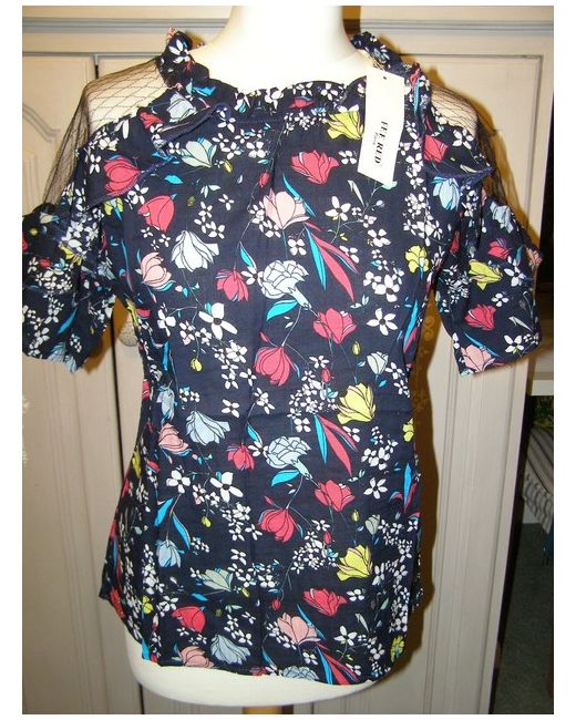 BNWT Fee Paris mesh insert cold shoulder summer top M medium da Women di colore Floreale