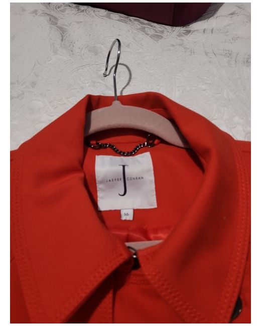 Brand: Jasper Conran Size: 16 Type: Trench Coat Colour: Red Material: Outer Shell - Polyester and Cotton, Lining - Polyester Style: Long Sleeve, Button Closure This Jasper Conran coat in size 16 is a stylish red trench coat made of polyester and cotton with a polyester lining. It features a button closure and is perfect for adding a pop of colour to your wardrobe. Very stylish and excellent quality