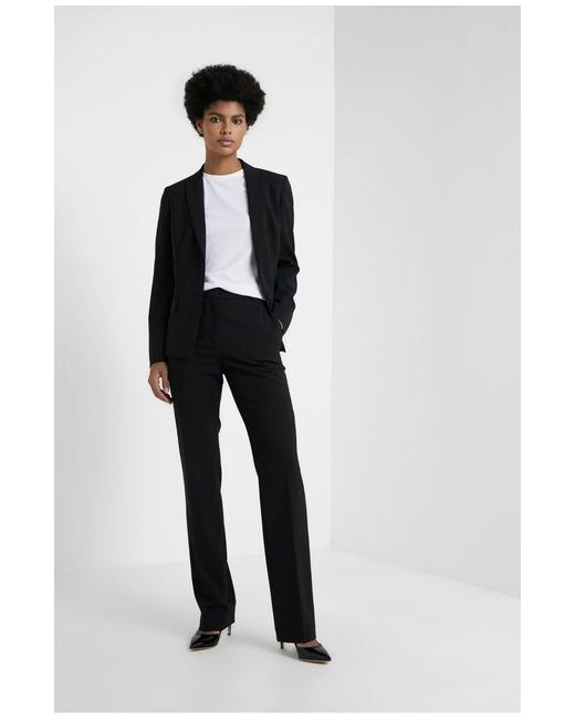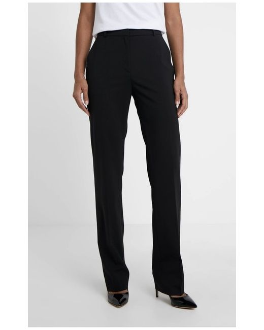 Hugo Boss The Regular Trausers Size 16/Black. Outer fabric material: 98% wool, 2% elastane Care instructions: Dry clean only Rise: High Fastening: Concealed fly Pockets: Back pocket, side pockets Pattern: Plain