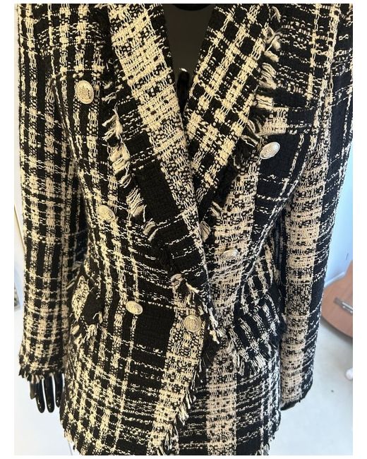 The blazer features a button closure and a unique check pattern that adds a touch of sophistication to your look.