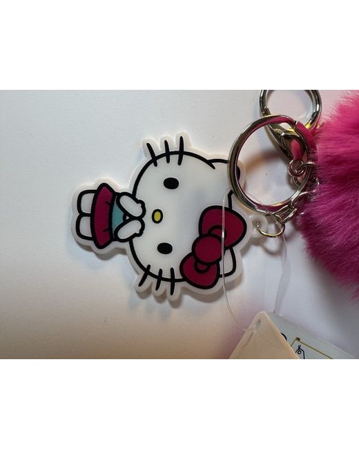 The Hello Kitty Pink Soft and Fluffy Pom Pom Keychain is a cute and charming accessory designed for women. Made of faux fur, plastic, and metal, this keyring features a Hello Kitty character design with a pink colour and fur trim accents. The pom pom adds a playful touch to the keychain, making it a fun and feminine addition to any outfit. Perfect for fans of Hello Kitty and those who love unique and playful accessories.