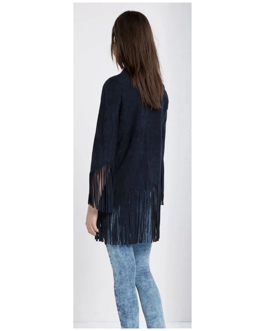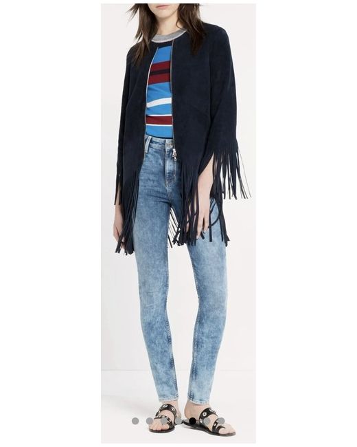 SANDRO 100% goat fringed leather jacket in navy blue Fits Comfortable S and Exact M RRP:600Ā£