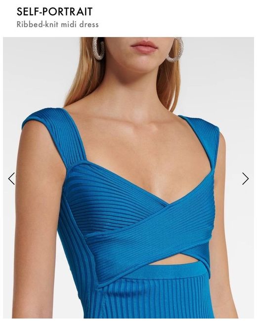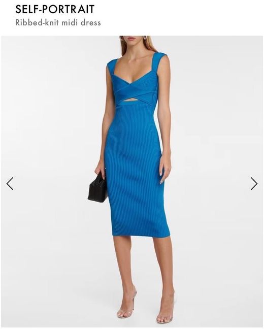 Experience the ultimate sophistication with this stunning Self-Portrait dress in size 6. This beautiful bodycon midi dress in blue is perfect for any formal occasion. The self-portrait brand delivers a unique and awe-inspiring style for women. The dress is designed for regular size and is made from high-quality fabric. Its exquisite blue colour is perfect for a woman that wants to make a statement.