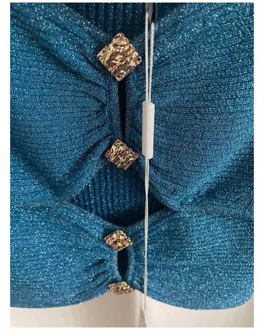 Ribbed Viscose Knit Top UK Medium Button Up Design
