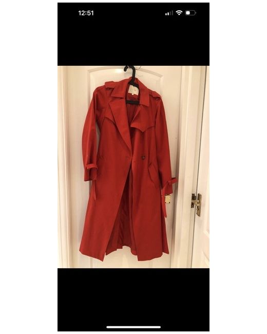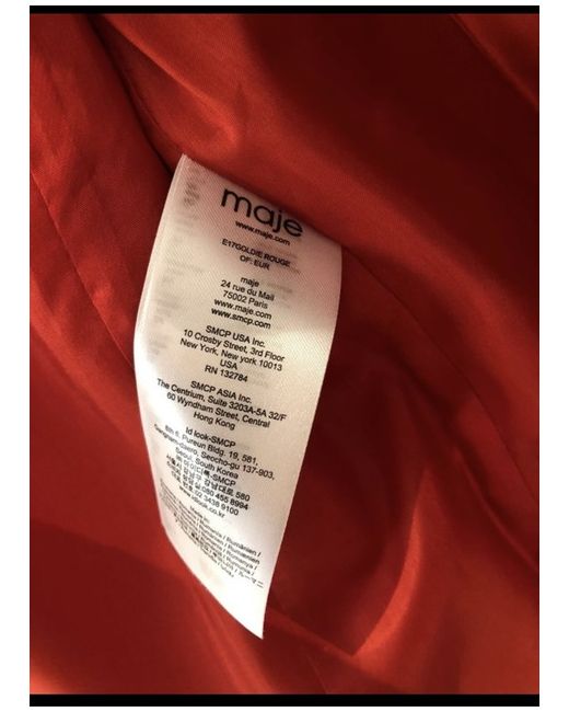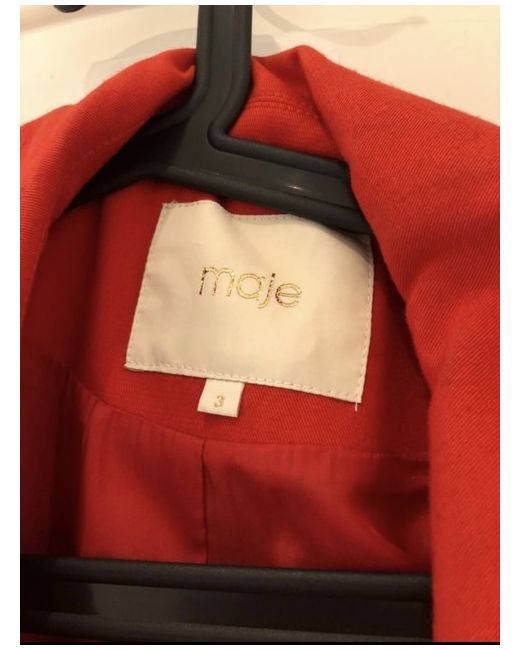 Terench Coat. Never worn A never-worn item without a tag is an item which has never been worn and shows no defects or alterations. Long , wide trench coat in waterproof cotton fabric. Long, straight sleeves. Jaspé buttons featuring the Maje logo. Pockets and tabs on shoulders and cuffs. Contrasting patches. Smocking and flap at the back. Removable belt with buckle. Ideal for daytime. Do not wash Do not bleach Iron at a maximum temperature of 110°C without steam Professional dry cleaning in hydrocarbons, mild process Do not tumble dry