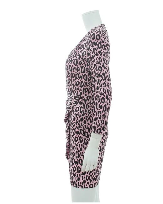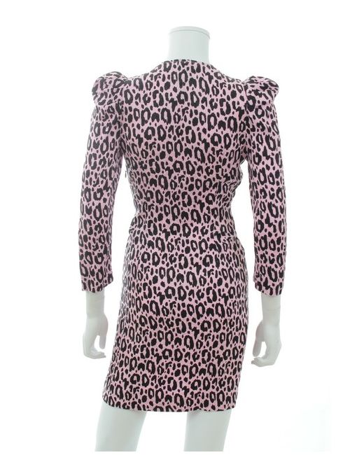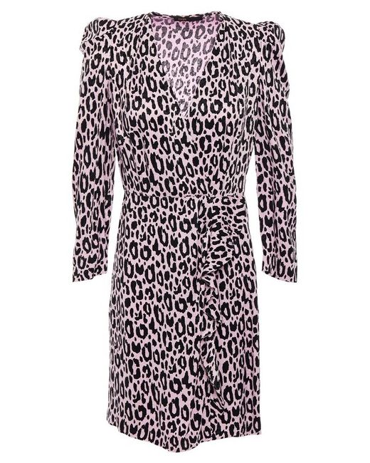 Maje leopard printed crepe dress. T hree-quarter-length puff sleeves. All-over animal print. Wrap-over at front. Flared trim at front. Straight hem. Concealed zip fastening at side. RRP £269.00.
