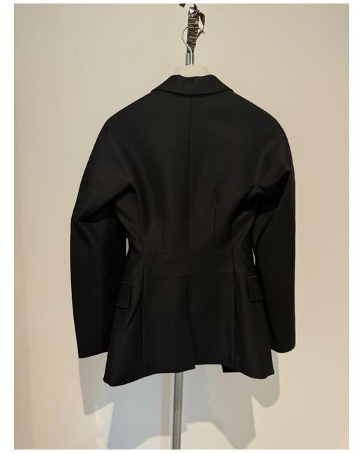A blazer in double viscose and stretch wool (61% viscose, 35% wool, 4% elastane) - Tailor collar - Waist closure with removable lamb leg and palladium metal Etrivière buckle - Flap pockets on the sides - Viscose and silk twill lining (75% viscose, 25% silk) - Sleeve lining in mignonette - Inner chest pocket - Epaulettes Domestic: RM/DHL International: DHL Measurement (approx): Chest: 75cm Length: 65cm Sleeves: 68cm