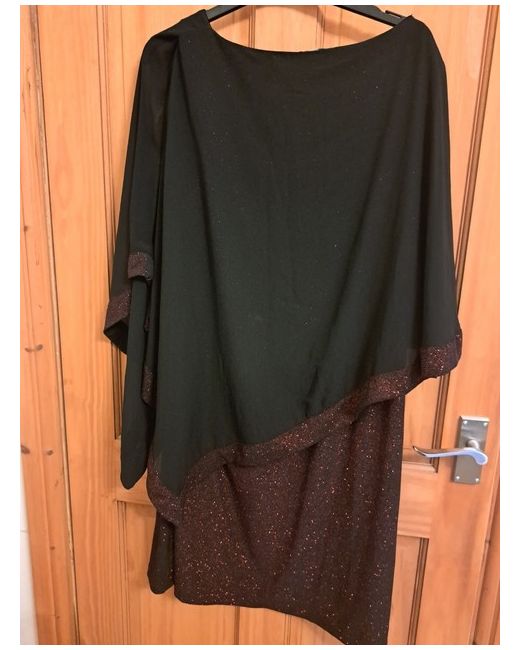 This Klass dress in size 20 is a stylish choice for a party or cocktail event. The dress features a bodycon design with a flared coverup overlay, giving it a unique and flattering silhouette. Made from a blend of polyester and viscose, the dress is adorned with glitter accents in black and red, adding a touch of sparkle to the outfit.