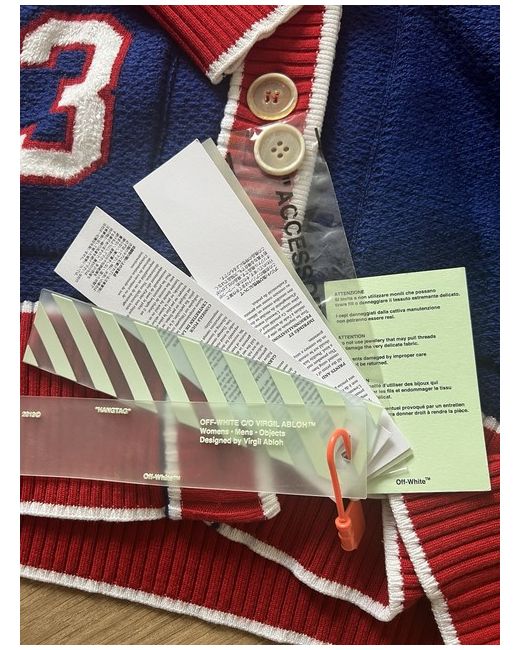 This off-white long cardigan in size M features a stylish V-neckline and is made from comfortable cotton knit fabric. Perfect for casual occasions, the multicoloured design with button accents adds a touch of sophistication to the classic cardigan style. Made by the brand Off-White, this regular fit cardigan is a versatile and stylish addition to any man's wardrobe.