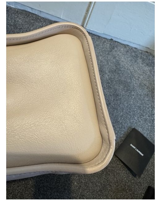 The marks are not obvious, there are close up photos. Size, can fit an iPad. Depth - 13cm and 10cm (top part).