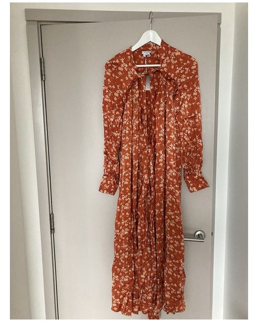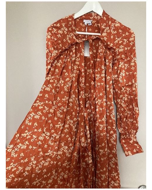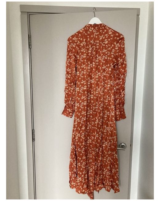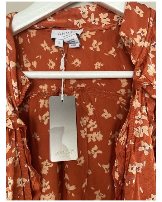 GHOST size S / uk 10 New with tag! Orange Satin Long Sleeve Floral Midi Wrap Dress
