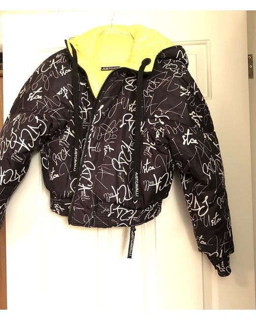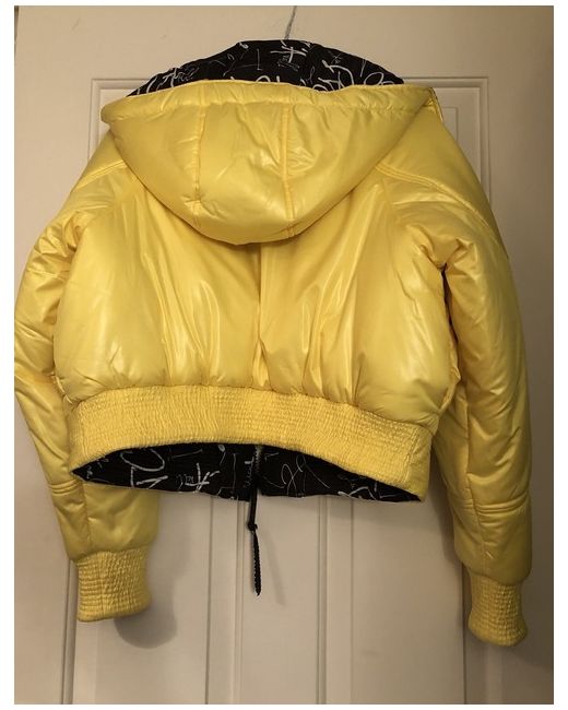 Just Cavalli jacket women's, yellow ,Full Zip Jacket, Size 8. Just Cavalli logo-print hooded jacket with pockets, on zip, Double sided, can be worn on both sides