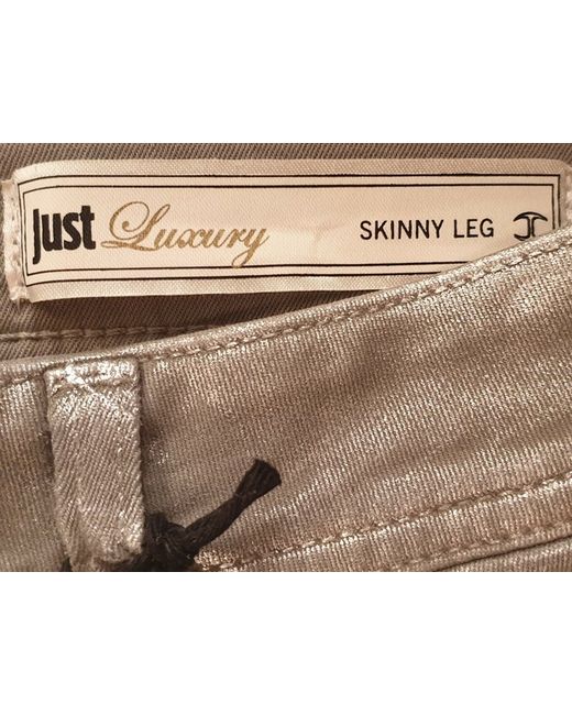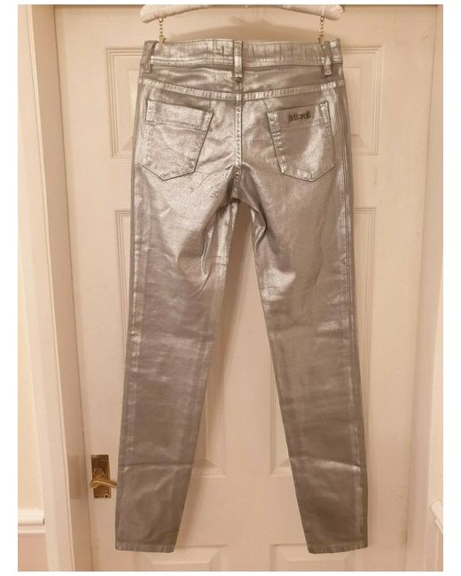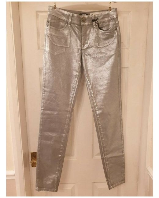 ROBERTO CAVALLI. JUST CAVALLI. SILVER SKINNY JEANS TROUSERS. denim, coated effect, logo, solid colour, coloured wash, mid rise, front closure, button, zip. BY TOP DESIGNER. 100%GENUINE & AUTHENTIC .
