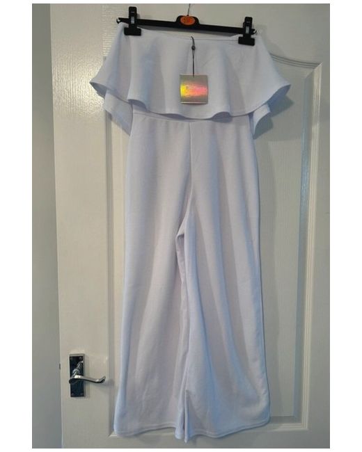 White off the shoulder jumpsuit from misguided. New with tags. Size 6. Has a musty smell as it’s been stored in the attic. Happy to wash before sending but will have to cut tags off to do so☺️ All items from smoke and pet free home
