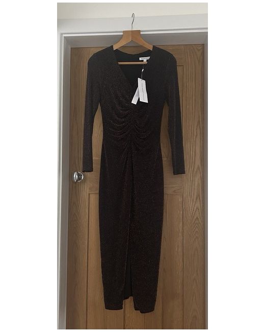 This Fenn Wright Manson dress in size 12 for women is a stylish A-line dress with long sleeves. Designed for party or cocktail occasions, the dress features a black fabric with bronze sparkle detail. The dress is midi length and made of thick and stretchy material, providing both comfort and a shimmery look. There is a pull at the back near the zip area (see in pictures).