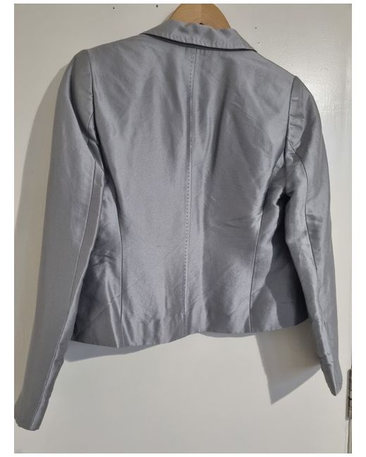 This Fenn Wright Manson jacket is made of silk with a satin fabric type, in a slim fit design. The jacket has 3/4 sleeves, a hook & eye closure, and comes in a sleek silver colour. Suitable for various occasions including parties, formal events, workwear, or business settings, this size 10 jacket is designed for women who prefer a more tailored look. Perfect for adding a touch of sophistication to any outfit.
