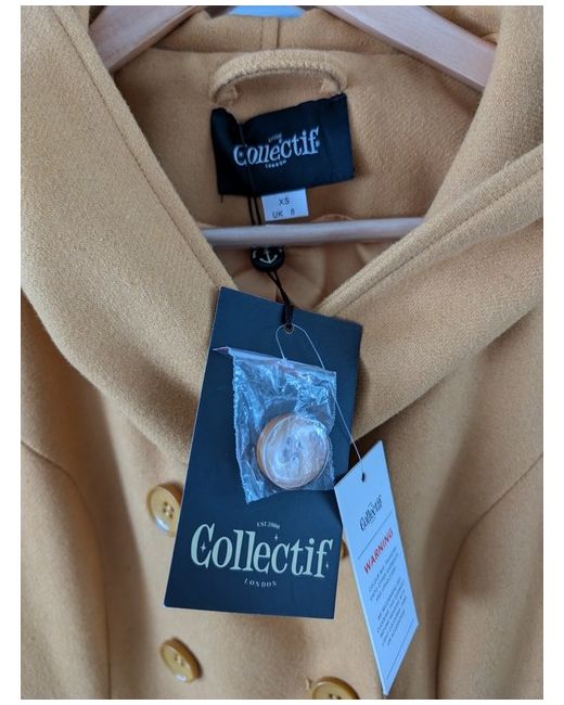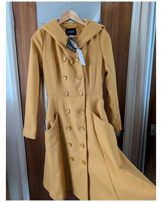 Gorgeous hooded yellow coat . 2 pockets, tailored, flaring at the waist. Very flattering. Discontinued as Collectif ceased trading. New with tags