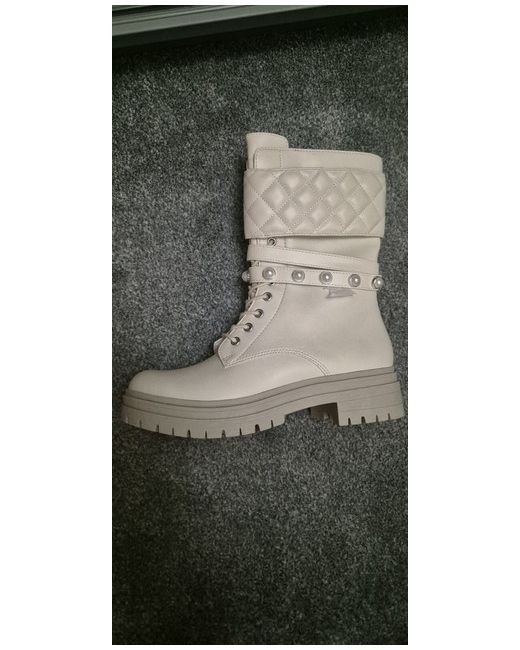 JustFab Cream boots, brand new never warn, took the paper off the middle pearl part for photo, no box as I had thrown it out thinking they would fit and to late to send back, size 4