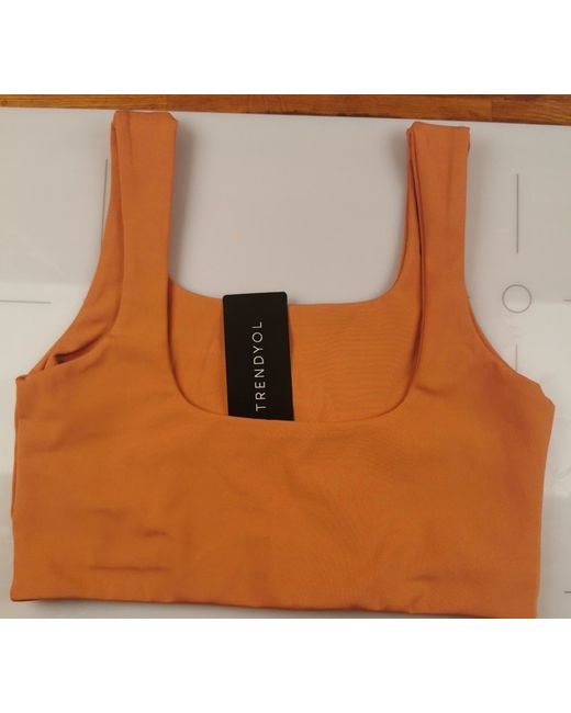 Elevate your workout game with this stylish Trendyol sports bra in a beautiful biscuit brown shade. Designed for women, this solid square neck sports bra offers medium support and is perfect for any activewear occasion. The bra is available in size 10 and is made with high-quality materials to ensure maximum comfort during workouts. The Trendyol sports bra features a chic style and is perfect for all women looking to add a touch of fashion to their activewear collection. Whether you're hitting the gym or going for a run, this sports bra is sure to provide the support you need while keeping you looking great. Brand New. Item nr 507/6(0.64)