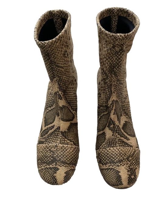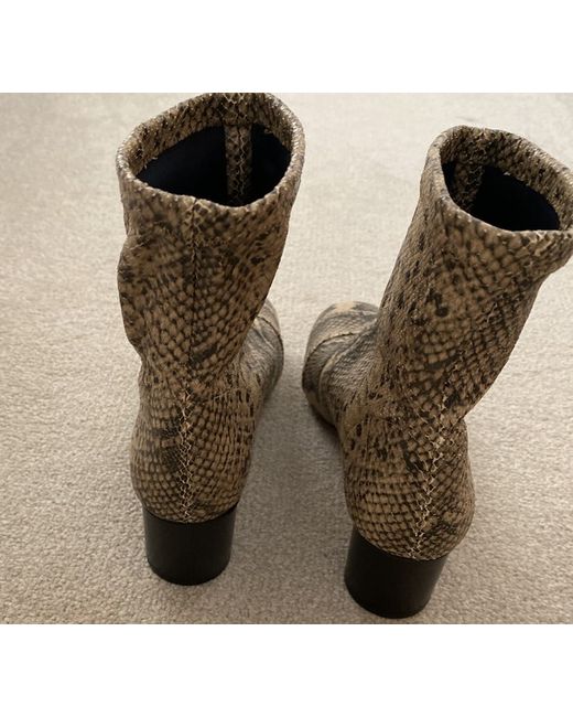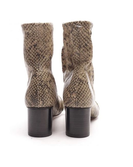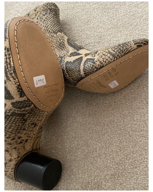 Isabel Marant Datsy pull-on leather ankle boots in snakeskin printed goat leather. Beige/ multicoloured. Elastic pull-on part. Description: Lining 100% leather/ other materials Internal Sole 100% cowhide leather Sole 100% Cow leather Shell 100% Goat leather Shaft width: 8 cm Shaft height: 14 cm Heel Height: 5.5 cm/ 2.2 inches Size EUR 39, narrow Made in Portugal New, dust bags, no box. Dispatched by Royal Mail tracked 48 hours