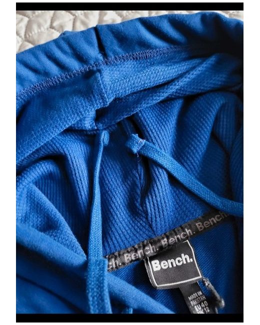This is a new with tags Bench women's blue hoodie in size 12. It features a full zip closure and is made of cotton. It is suitable for activewear and has a casual style.