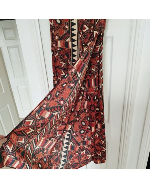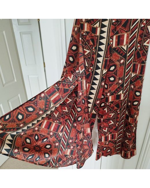Worn once. Super fun Boho style trousers with thigh high split. Perfect for festivals and parties. Smoke and pet free home. Burnt Orange and black aztex pattern.