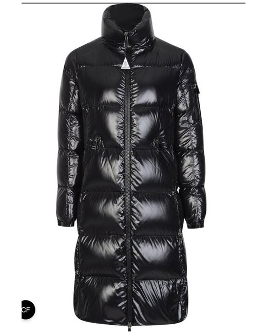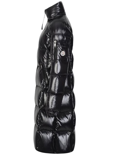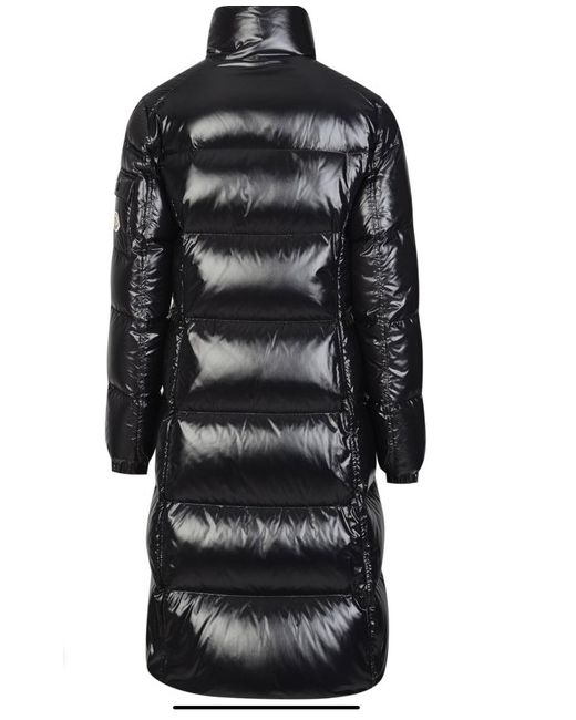 AUTHENTIC MONCLER MOYADONS LONG SHINY BLACK DOWN JACKET. Puffed with down, the padded style is rendered in shell, topped with a high neck (hello, warmth) and stamped with the labelās iconic logo at the sleeve.