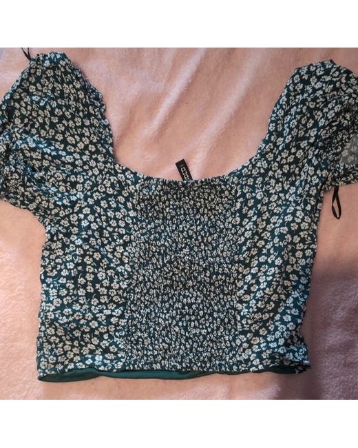 This new green Divided by H&M top for women is a size 10 with a regular fit. It features a cropped style with puff sleeves and a short sleeve. This top has never been worn and is brand new without tags.