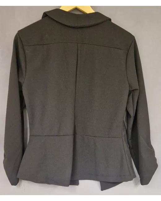 This black ribbed jacket is a stylish addition to any wardrobe. It features an open front and long sleeves, making it perfect for cooler weather. The jacket has a basic style that is versatile and can be paired with a variety of outfits.