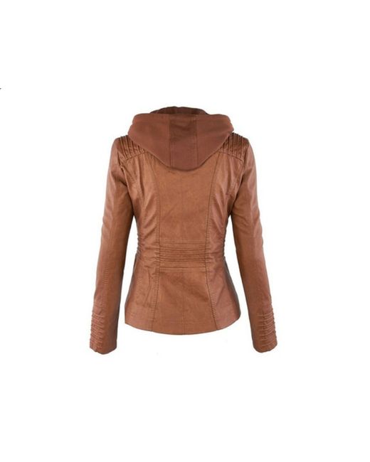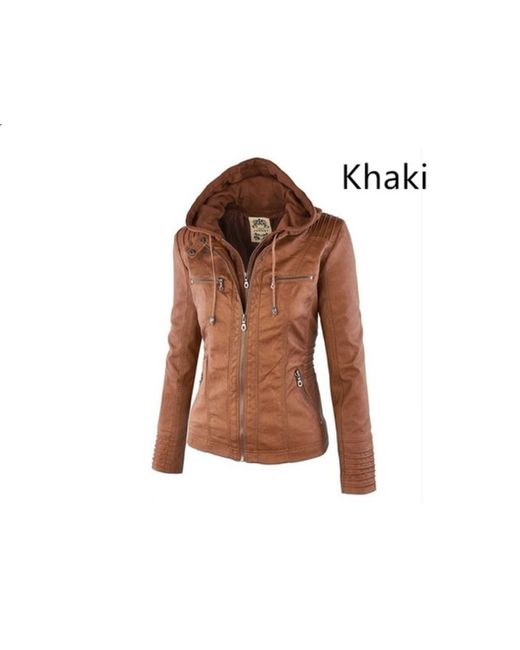 The jacket is made of high-quality faux leather and features a long lapel, long sleeves, and a zip closure. The khaki brown colour is perfect for any occasion, whether it's travel, workwear, or casual wear.