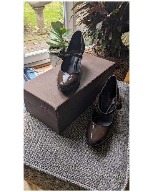 Never worn, brown patent leather Jones heels. Really lovely vintage style low heels, no signs of wear . Size 4/37. Still in the original box.
