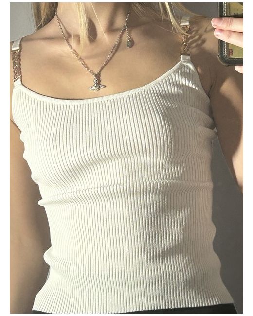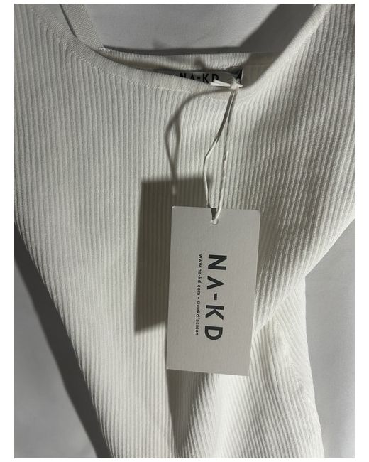 This Na-kd top in size 2XS is sleeveless and made of white polyester and viscose knit fabric. It features a chain accent and has a basic style. The top is designed with a Belle character theme, suitable for holiday, city, and classic looks. Perfect for women's casual wear.