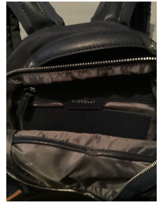 Zipped front pocket and zipped back pocket, top carry handle, inner zipped pocket and pocket for phone etc. grey nylon lining.