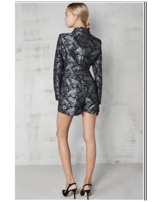 This Lavish Alice playsuit takes the tuxedo and twists it up to create a chic tailored playsuit. Fastening at the side, the playsuit wraps around the body to create a defined silhouette. The paisley-style metallic print is a glamorous choice for cocktail parties. "Perfect for an all-in-one cocktails outfit"