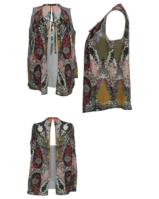Grey/Multi col Patterned sleeveless layer top UK 10 Stores Brand new da Women di colore Multicolore