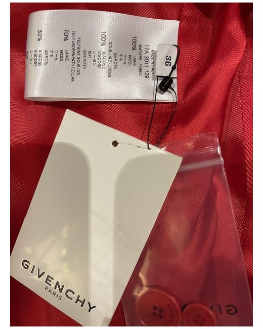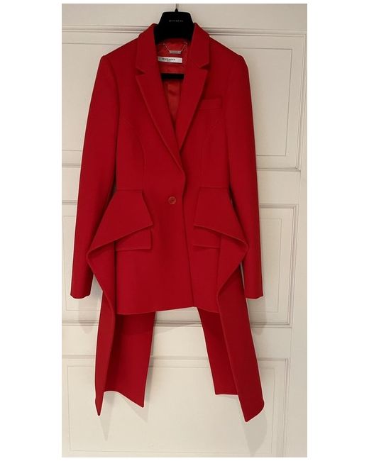 Givenchy Red Wool Blazer with Lapels and Drape Details On Sides. Size 36NWT.