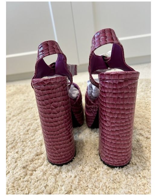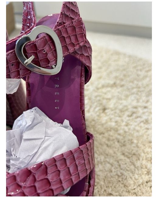 Bold Daisy Street Platform Heel. Square toe sandal, with block heel. Described as purple on the box, lovely statement piece. Heart shaped ankle strap buckle. Brand new with all box included