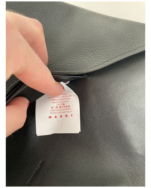 This stylish Marni Leather Envelope Bag is the perfect accessory for women who want to look chic at any occasion. With a solid pattern and rectangular shape, this clutch is designed to hold all your essentials securely with a button closure. It is ideal for both party/cocktail and business events. Crafted from high-quality leather, this black envelope bag has a black lining and silver hardware. It features credit card slots, making it a great choice for women who travel light. Made in Italy, this Marni bag is a must-have for fashion-conscious women who want to make a statement.